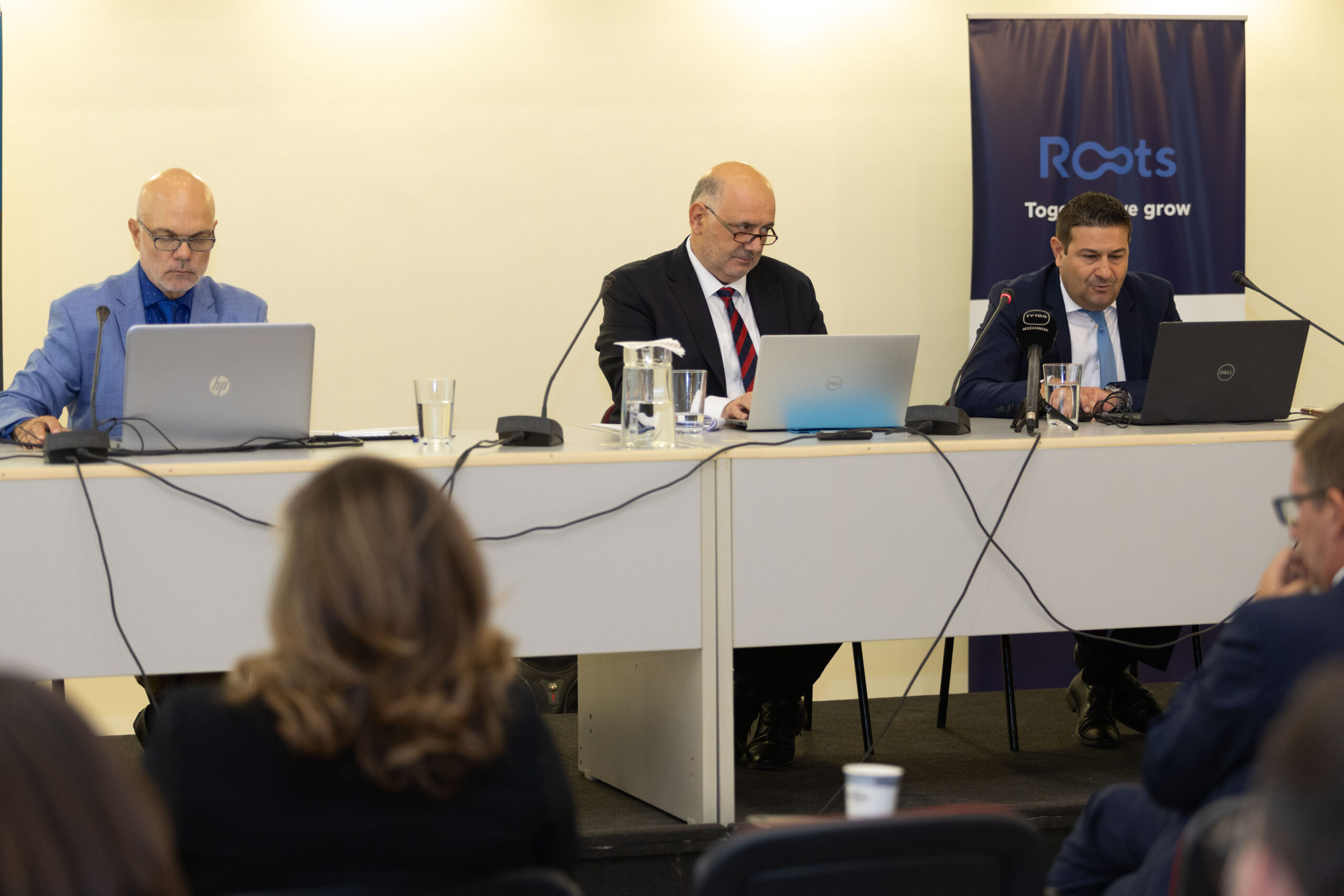 From the left, the Finance Director of EYATH SA, Dimitris Alexandris, and Agis Papadopoulos and Anthimos Amanatidis at today’s AGM.